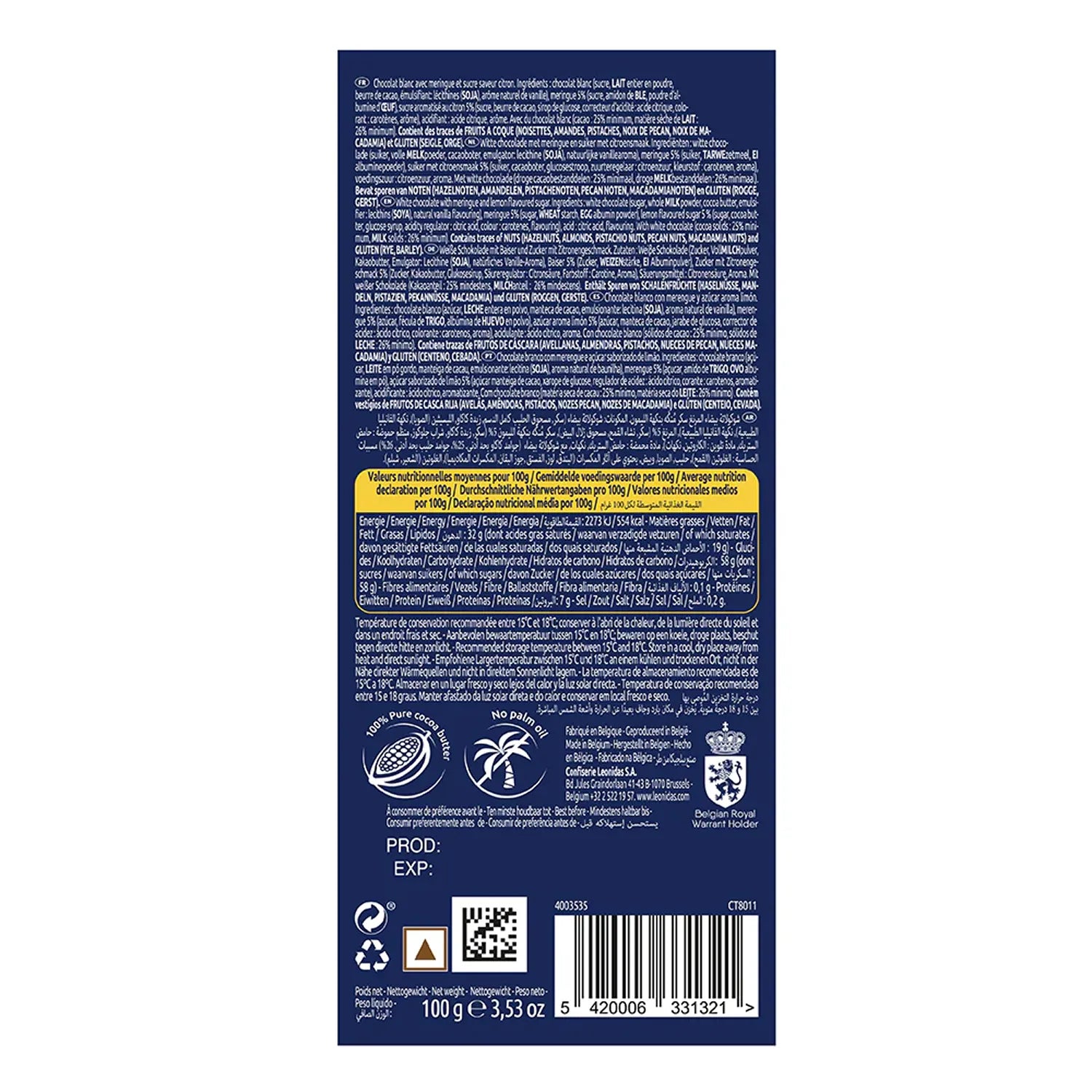 Nutrition declaration Per 100g Energy 2161 KJ Energy 519 kcal Fat 32g of which saturates 19g of which trans fat 0g Carbohydrate 47g of which sugars 44g Fibre 9g Protein 6g Salt 0.02g Sodium 5mg Cholesterol 0mg