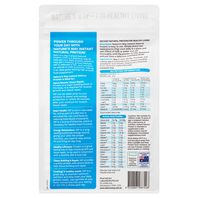 Nature's Way Instant Natural Protein is easy to use. Simply place two tablespoons (35g) once daily in a glass and add 250mL of milk or water and stir thoroughly until the powder is fully dissolved and you have a delicious nutritious drink.
