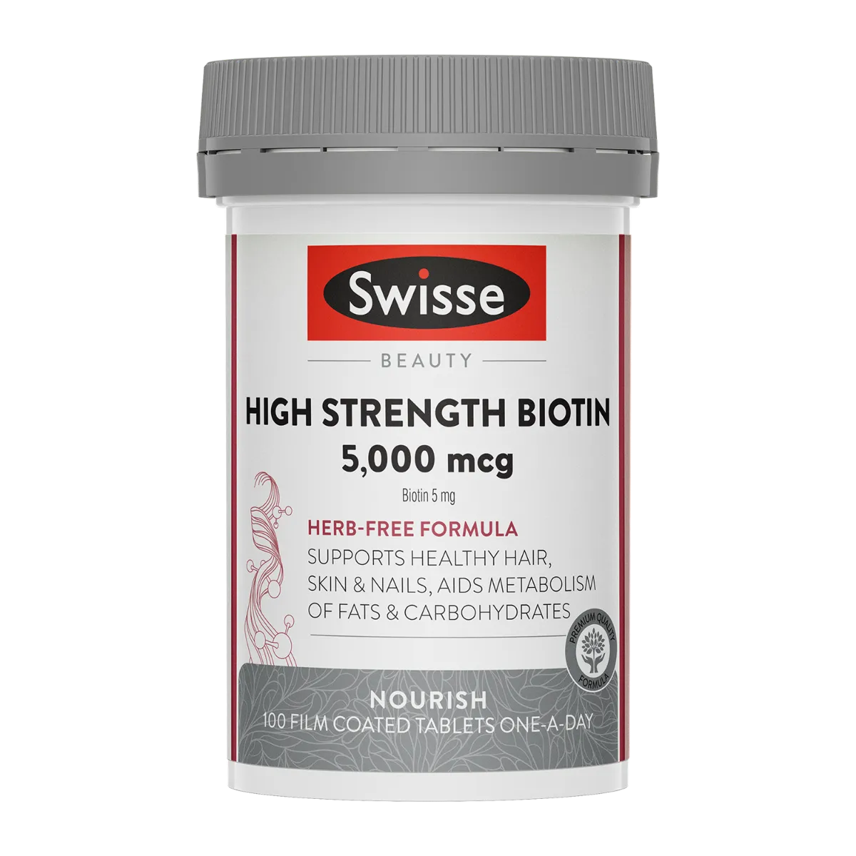 Swisse Beauty High Strength Biotin is a premium, herb-free supplement formulated to support healthy hair, strong nails, and radiant skin. Packed with a concentrated dose of biotin (vitamin B7), this formula helps strengthen brittle nails, reduce hair breakage, and promote natural beauty from within. Perfect for those seeking a clean, plant-free solution for everyday beauty support.